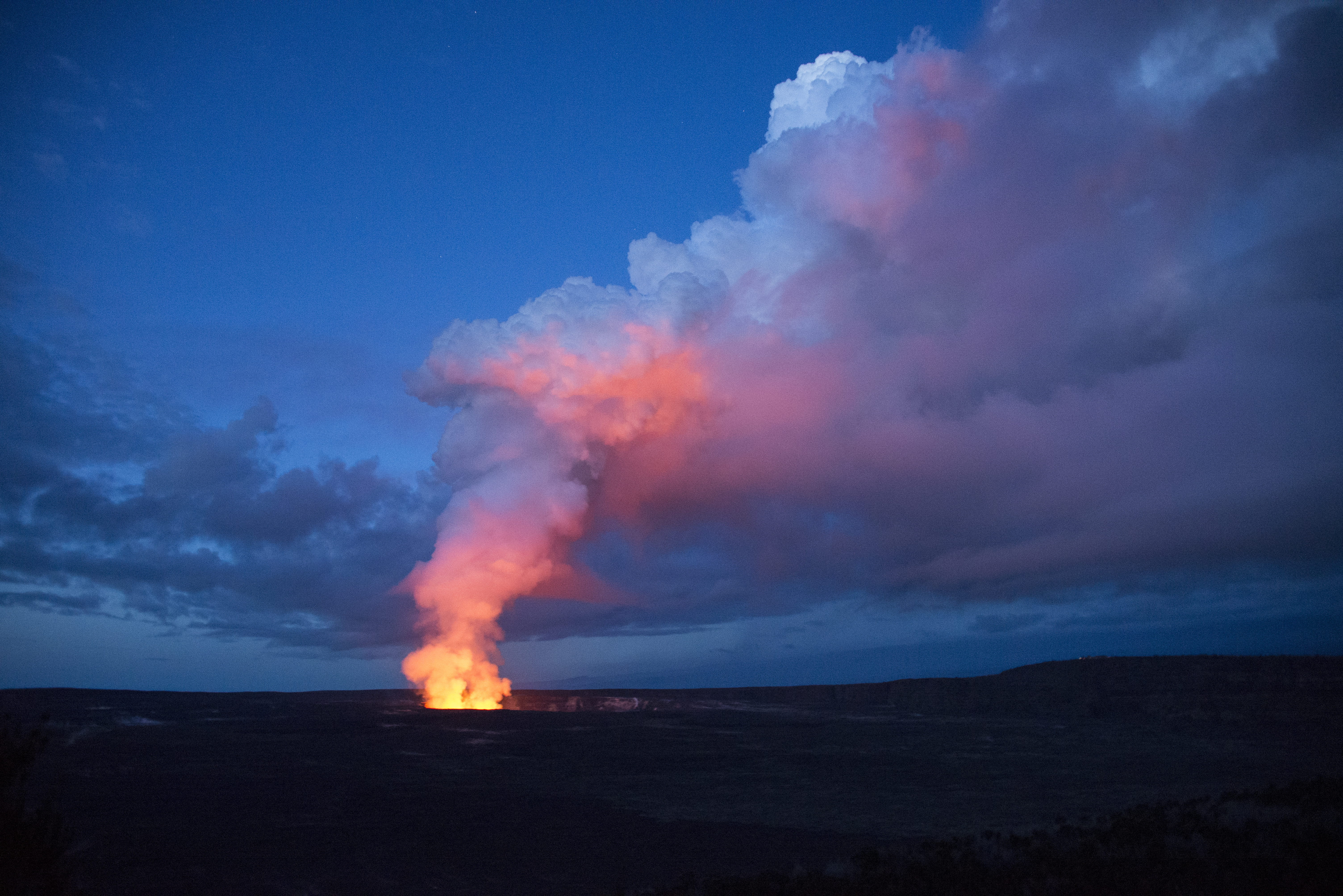 When Pele, the goddess who is said to live in the volcano, flings her fiery moods to heaven or cries her molten tears into the sea, tourists flock to Kilauea, Volcano National Park’s most active volcano. Since the 1982 eruption, she has grown more contemplative. The red-hot lava no longer weaves its flow towards the sea, falling off the edge of the island like a red river, steaming up the ocean, angry, forbidding. Instead, she casts her lava where tourists are not allowed to tread.